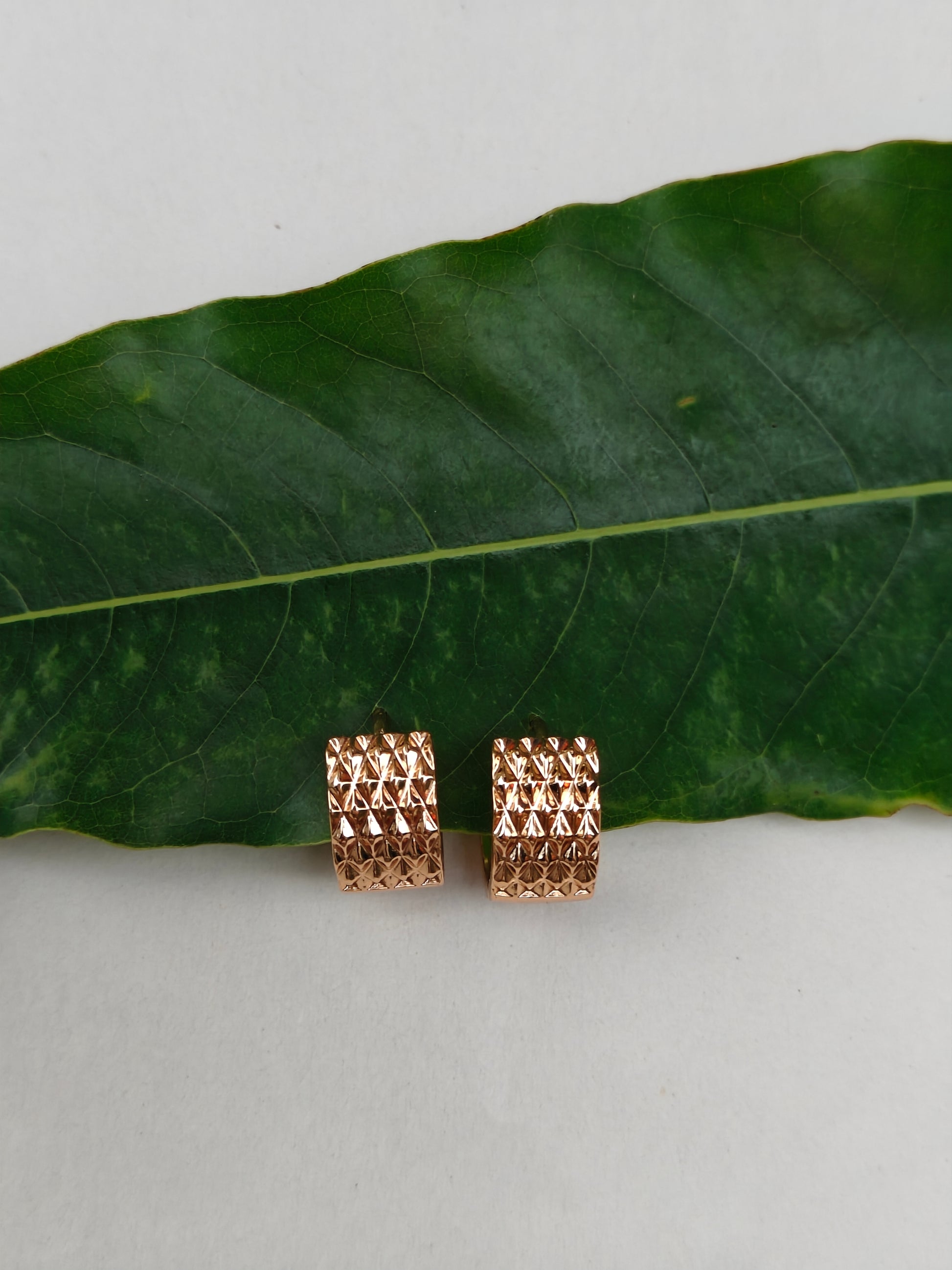 These small circle studs put a modern spin on timeless texture. Crafted in a warm rose gold finish, their delicate woven-basket pattern offers a subtle, mesmerizing detail that catches the light. A perfect example of "no volume but real sound," these earrings are simple in shape but rich in depth, offering understated elegance for your everyday wear.